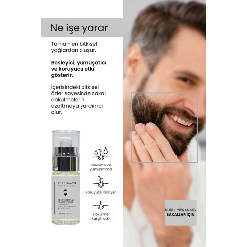Pure Saach Professional Sakal Serumu en yakın dostu olan bu mükemmel serum içerisinde bulunan besleyici doğal yağ özü ile formülize edilmiştir. Temiz sakalımıza fındık tanesi kadar avucunuza alarak tüm sakala hafifçe uygulayın sonrasına sakalınızda oluşan muhteşem yenilenmeyi hissedin. Bu ürün sakalınızın daha canlı ve parlak olmasını sağlayacak ve ölü hücrelerin canlanmasını yardımcı olacaktır.